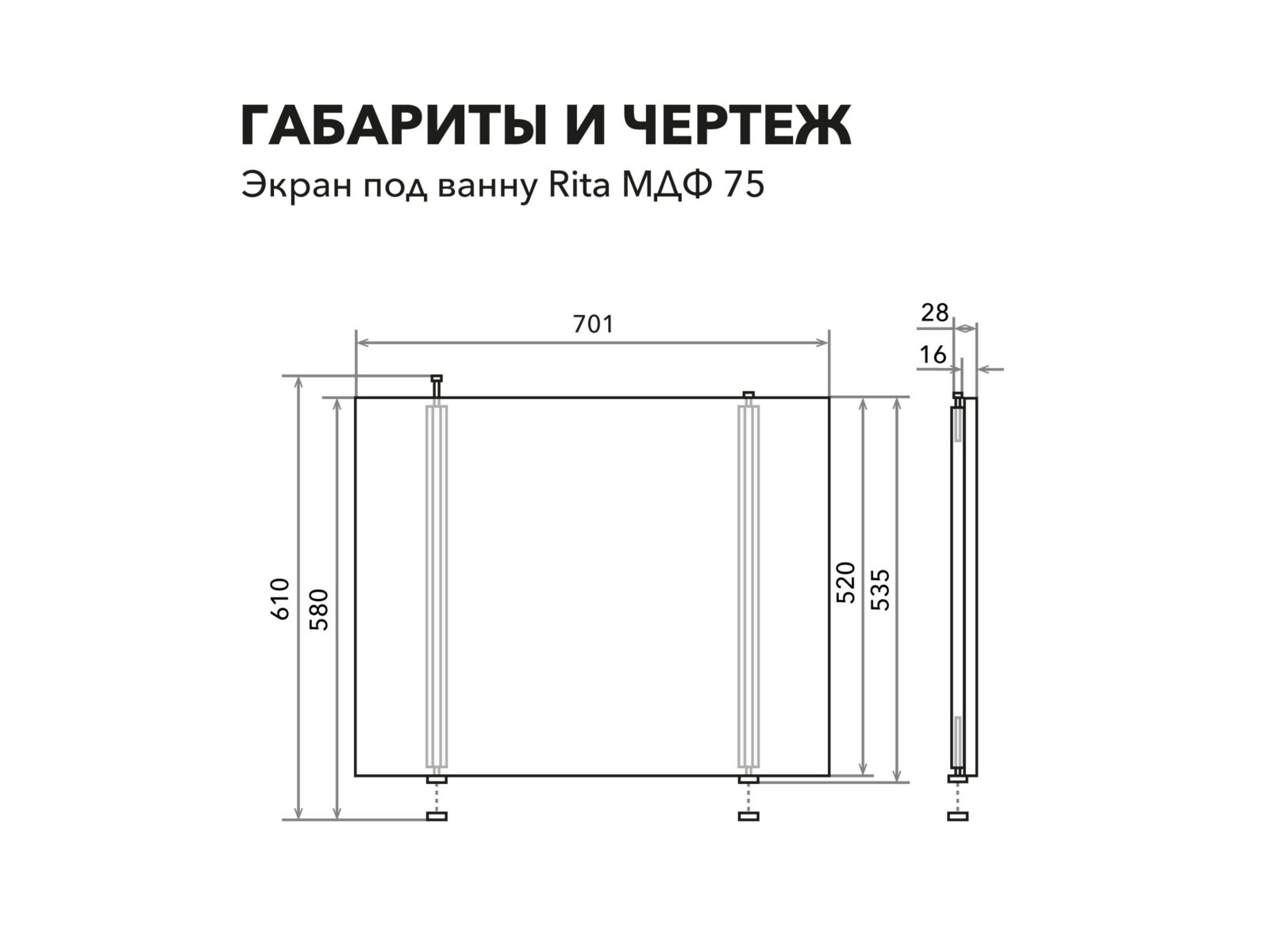 - Экран под ванну МДФ Rita 0,75 торцевой белый