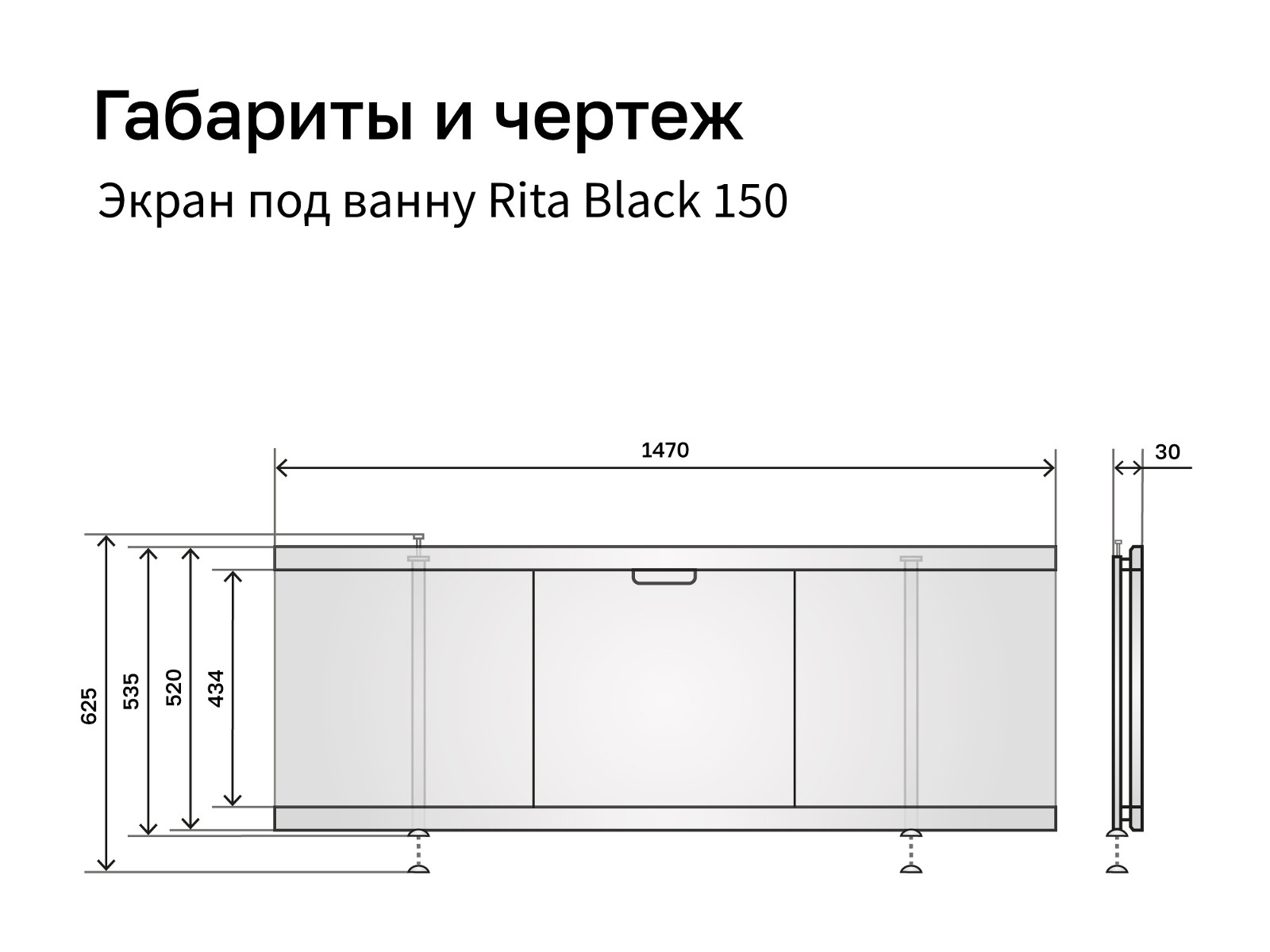 - Экран под ванну МДФ Rita Black 1500 мм черный мрамор