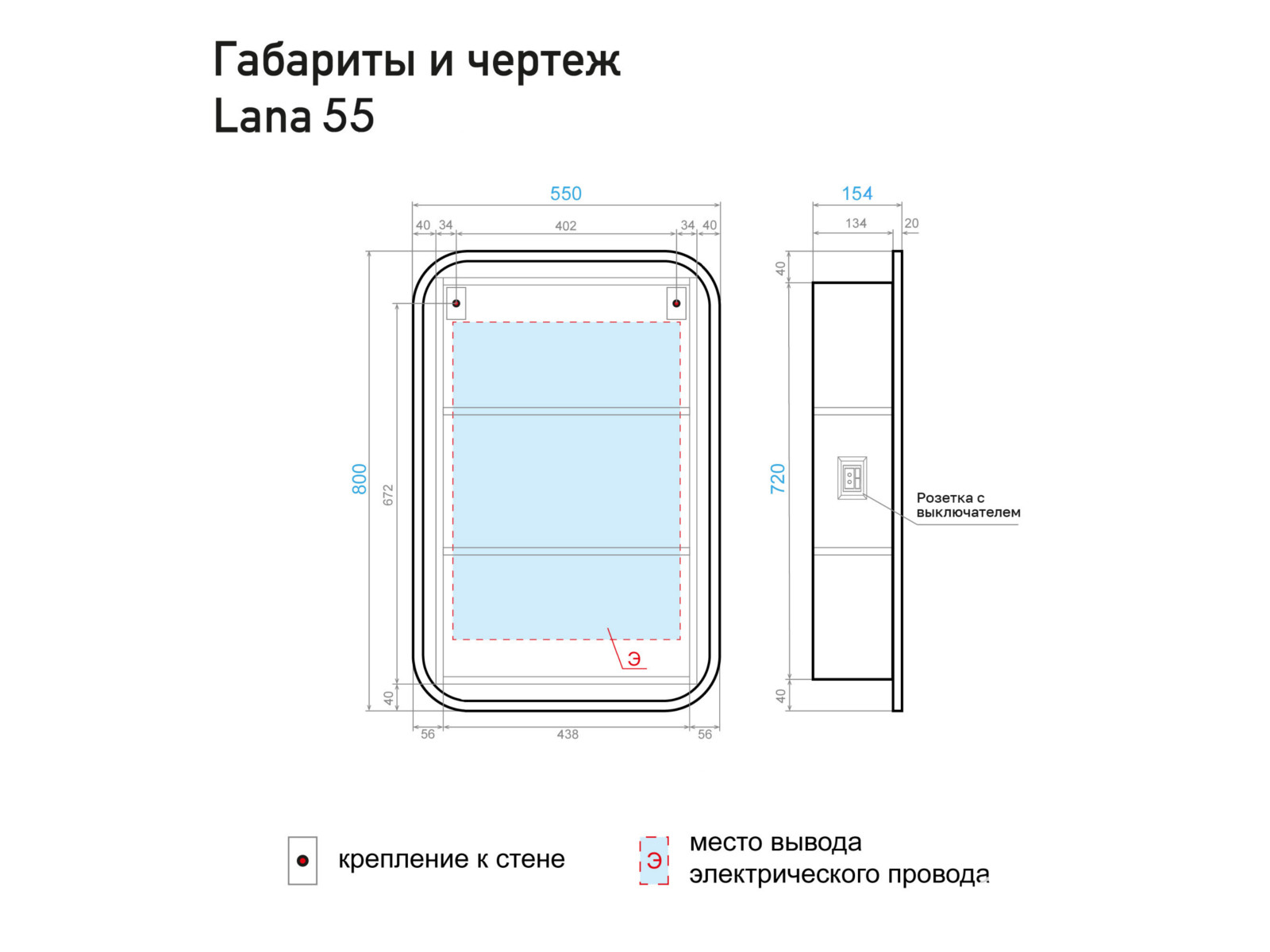 - Шкаф зеркальный Lana 55 нейтральный
