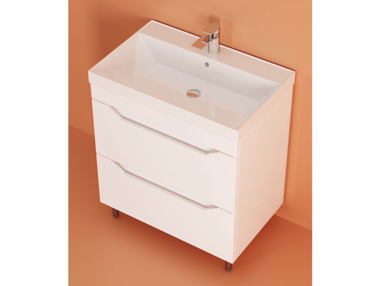 - Тумба "Сохо" 80 напольная 2 ящика белый + ум Слим 80 или Комфорт 80
