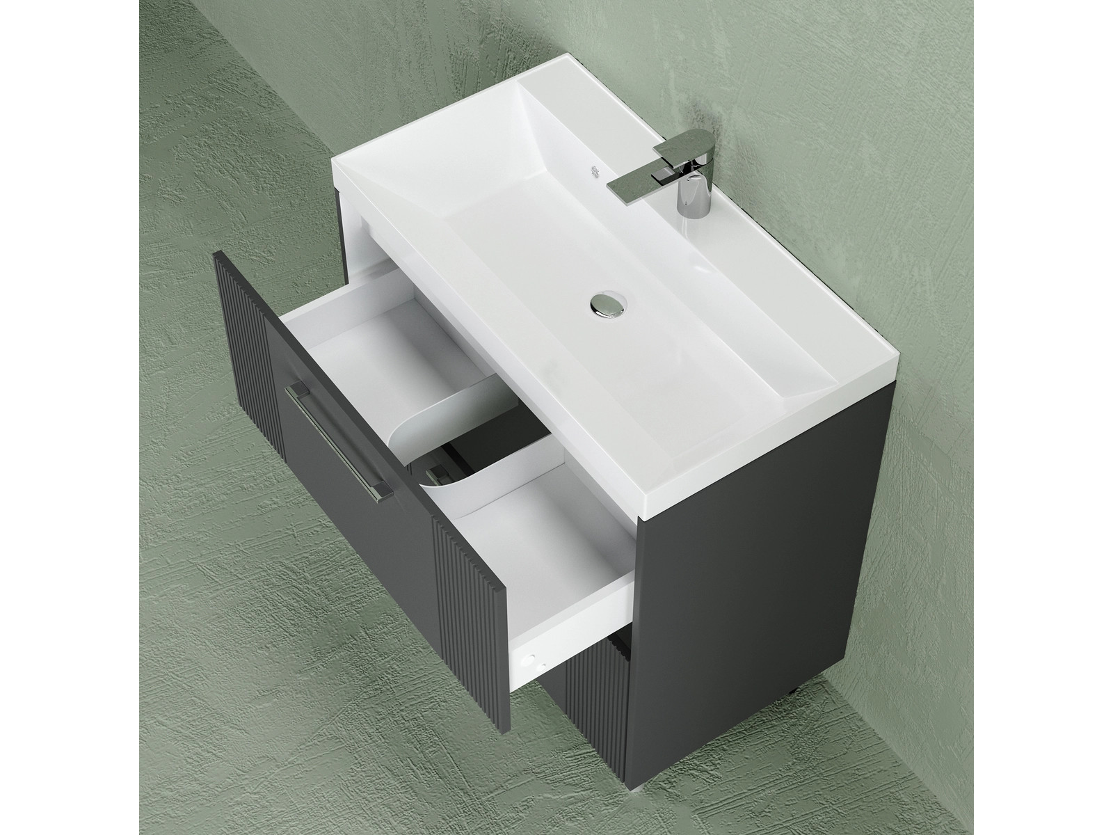 - Тумба Альба 80 напольная 2 ящика Комфорт 80 антрацит