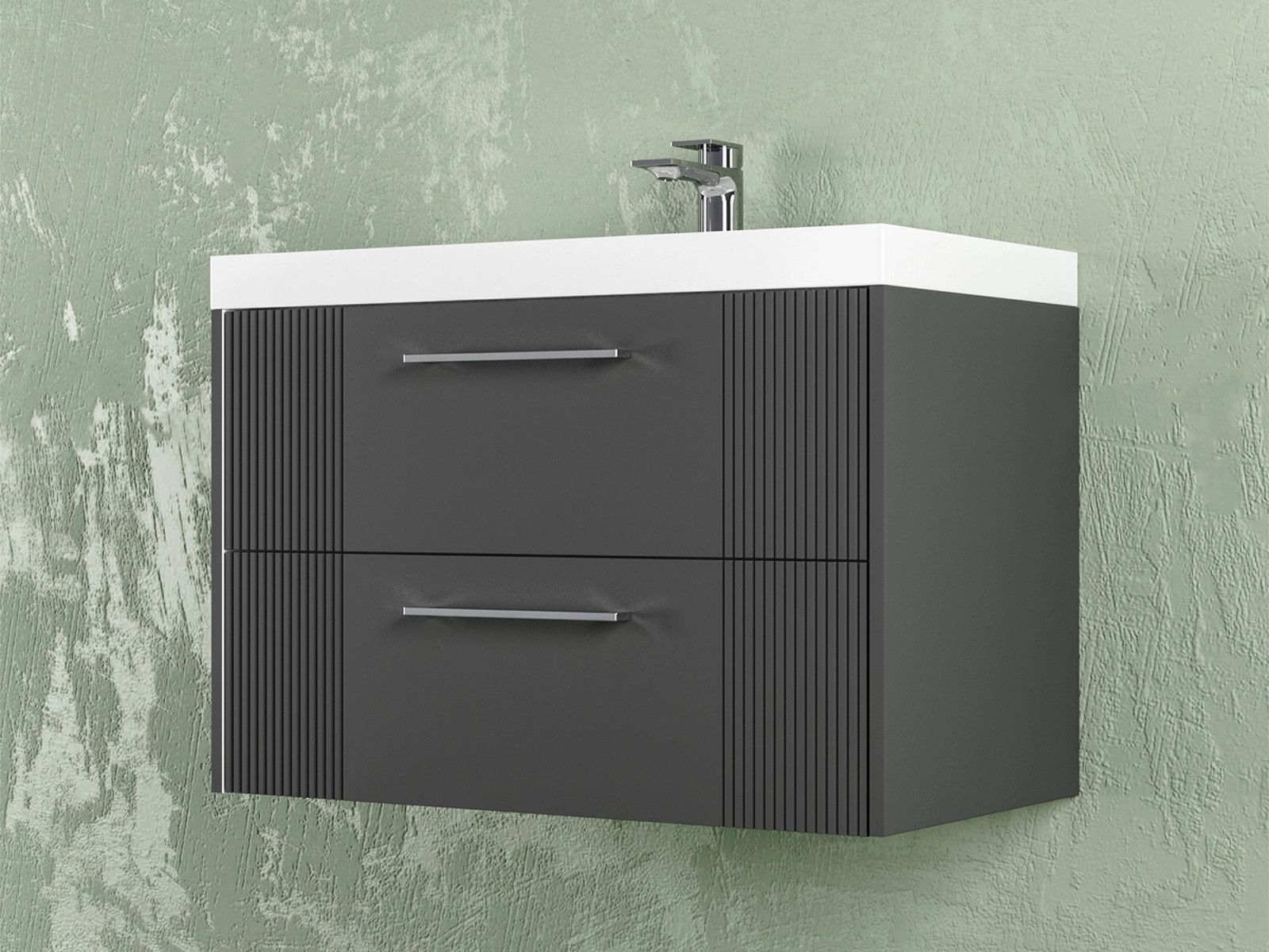 Тумба Альба 80 подвесная 2 ящика раковина Комфорт 80 антрацит