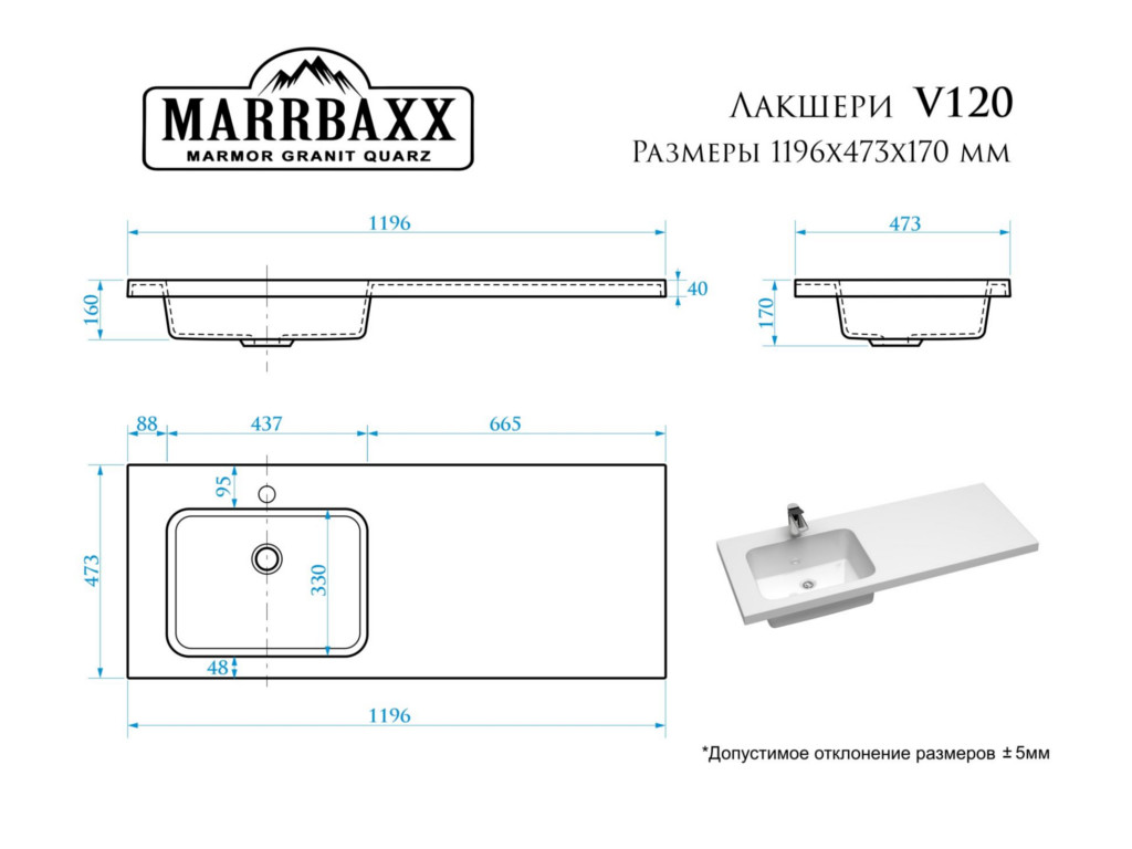 - Раковина Лакшери V120 левая (кронштейн и сифон в комплекте) ИЛИ Раковина Лакшери V121 правая (кронштейн и сифон в комплекте)