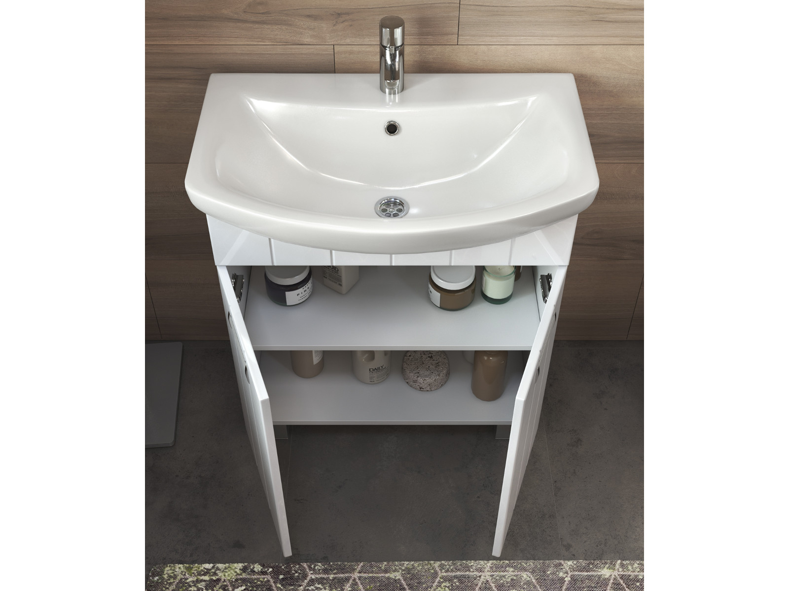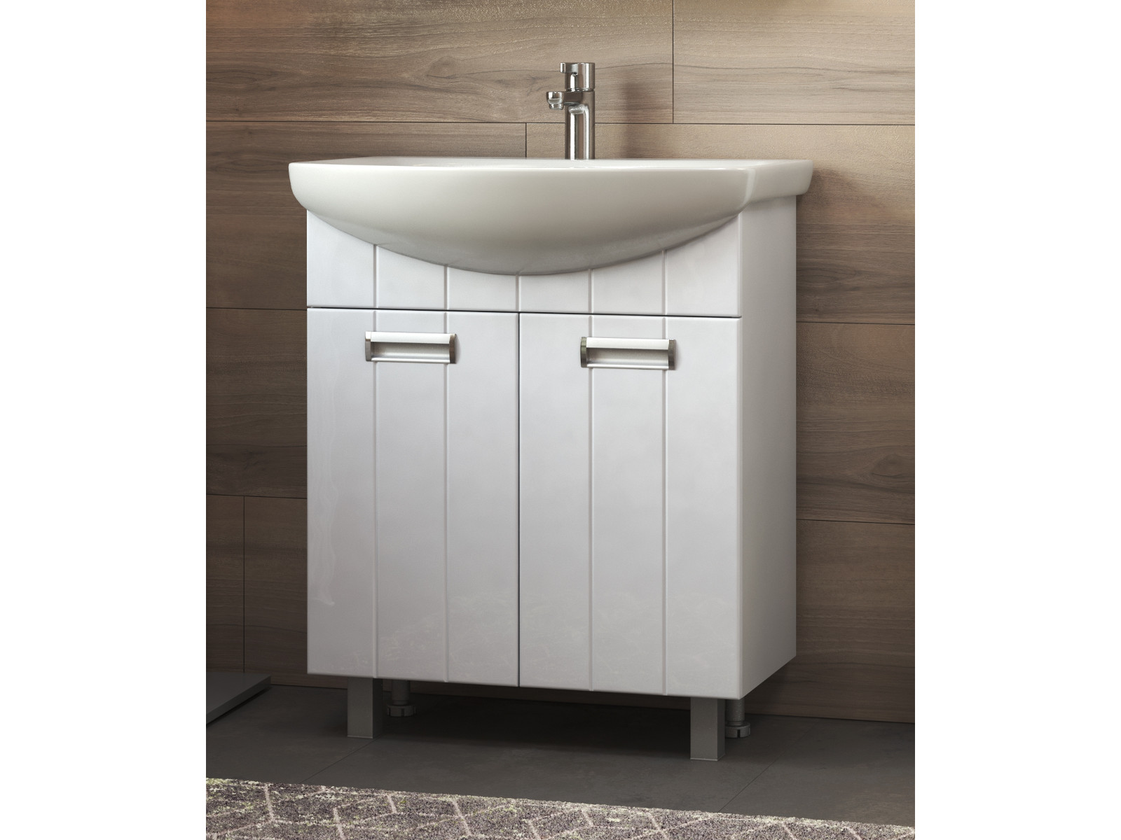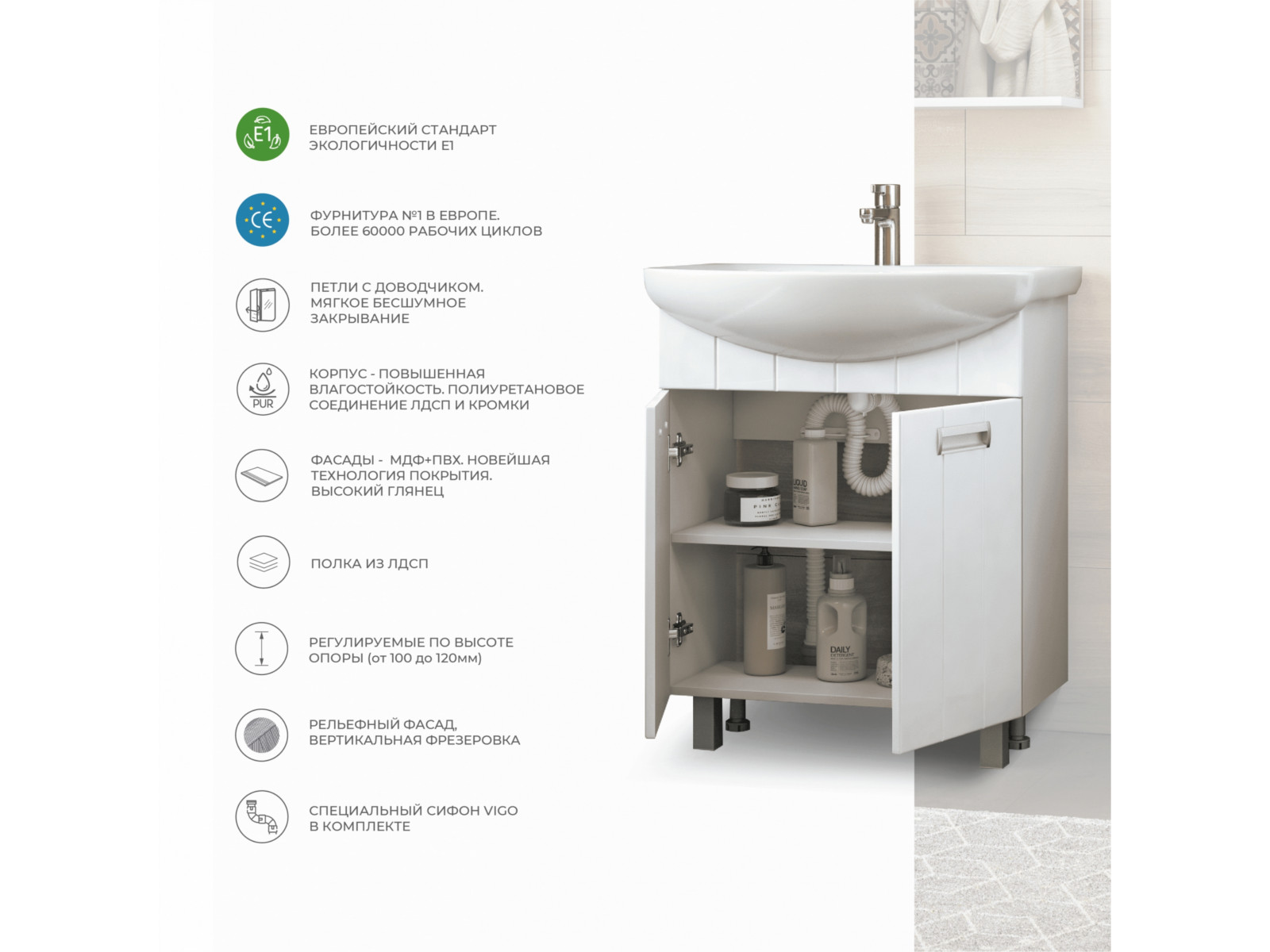 Оснащение: 2 дверцы; 1 полка ЛДСП; ручка врезная металлическая хромированная, опоры квадратные регулируемые.