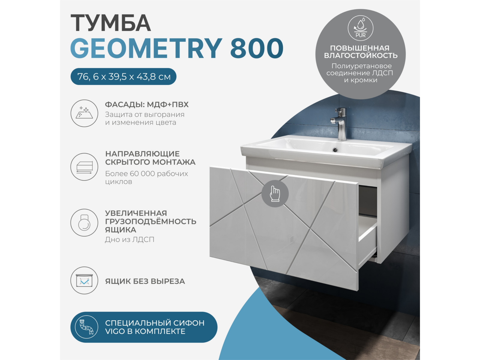 Размер тумбы с раковиной (ШxГxВ): 800x450x420 мм