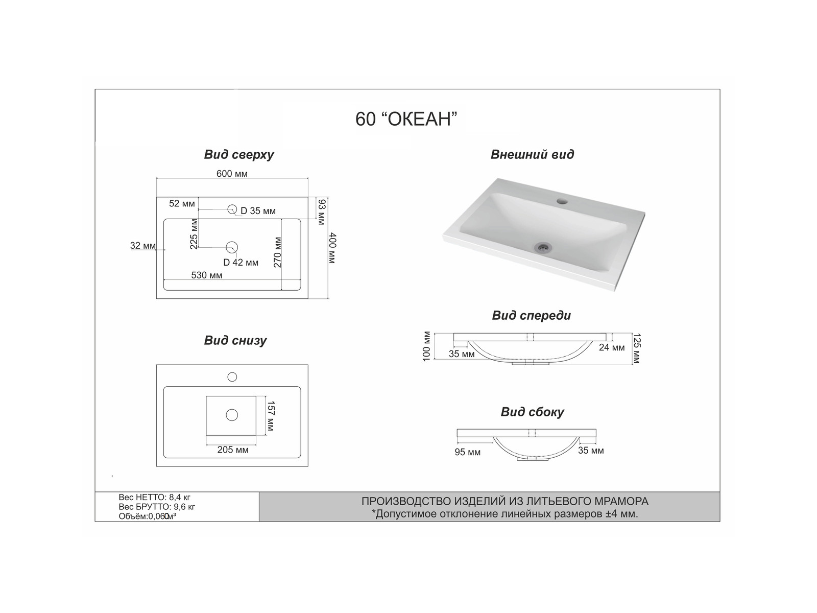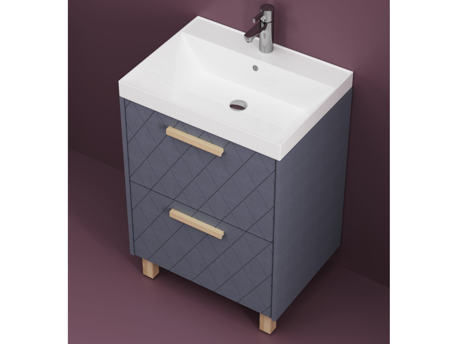 - Тумба Кристалл 60 напольная 2 ящика ручка дуб, раковина Океан 60 шато азур