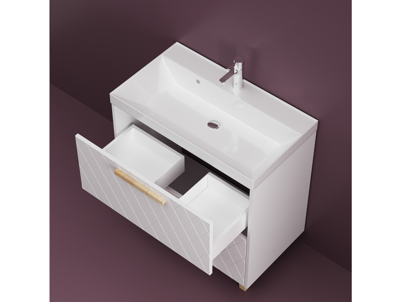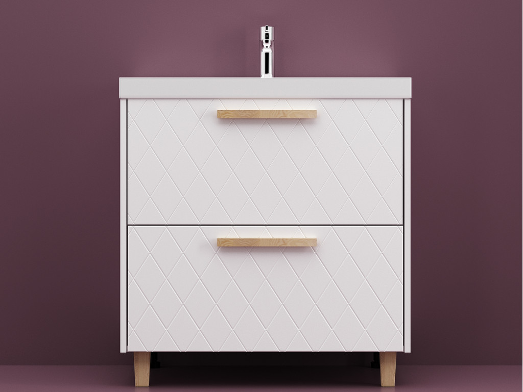 - Тумба Кристалл 80 напольная 2 ящика ручка дуб, раковина Комфорт 80 Суфле