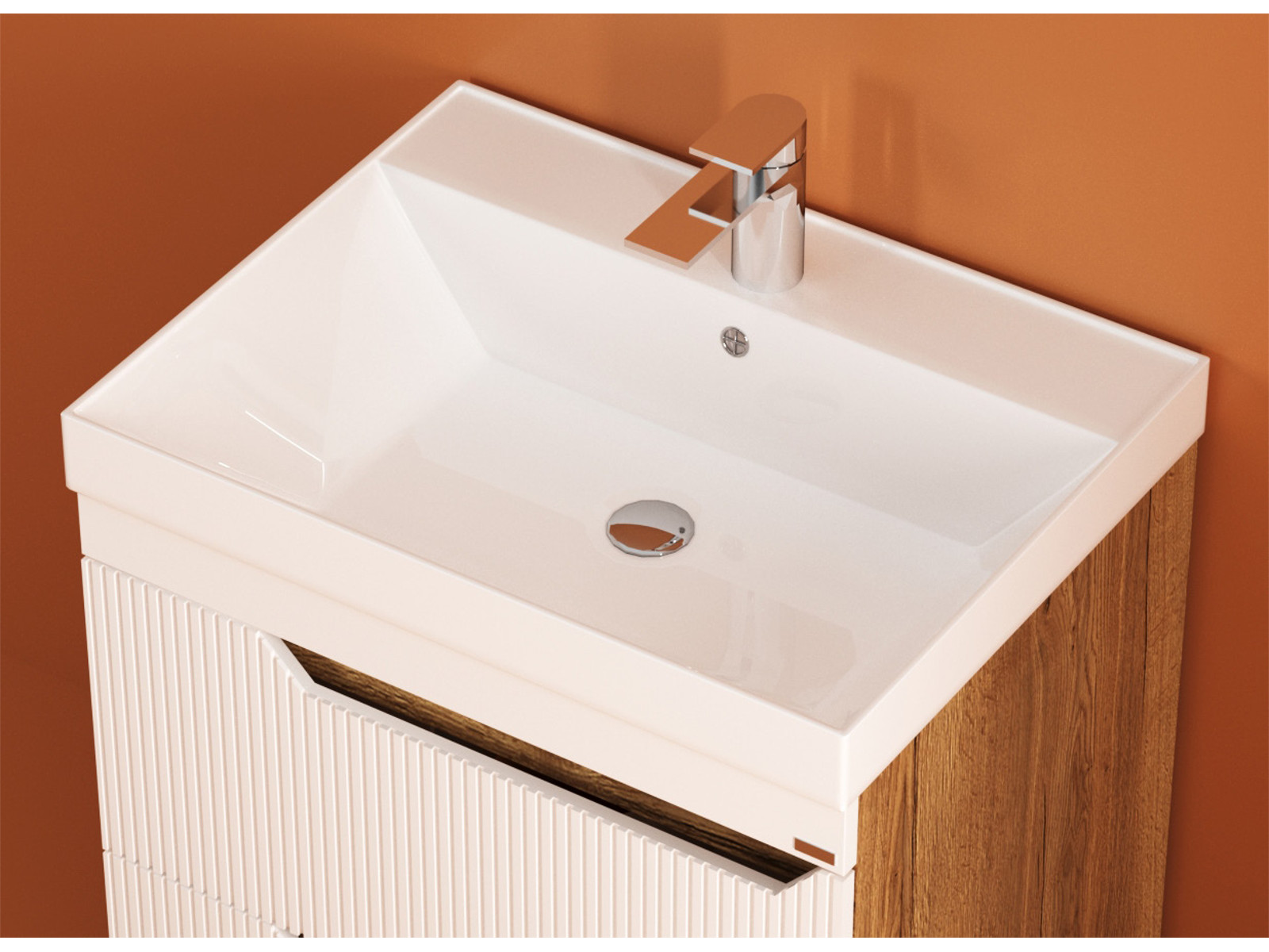 - Тумба Леон Риф 80 напольная 2 ящика раковина Комфорт 80 солярис/белый риф