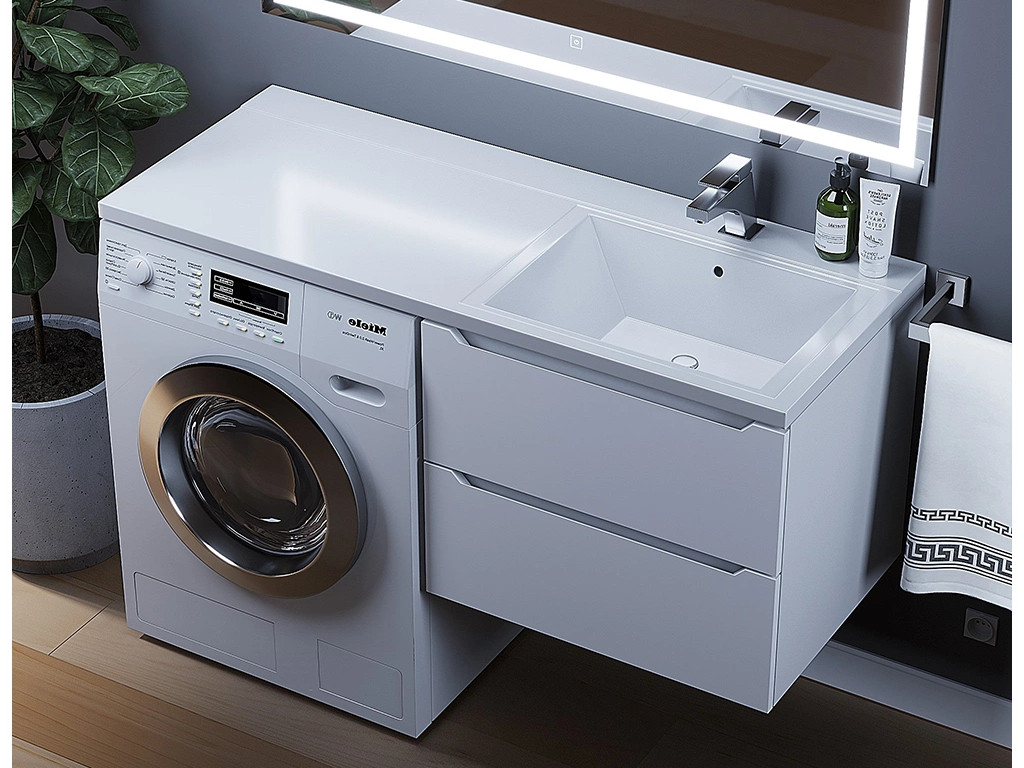 - Тумба под стиральную машину Uperwood Tanos 60 см подвесная правая белый