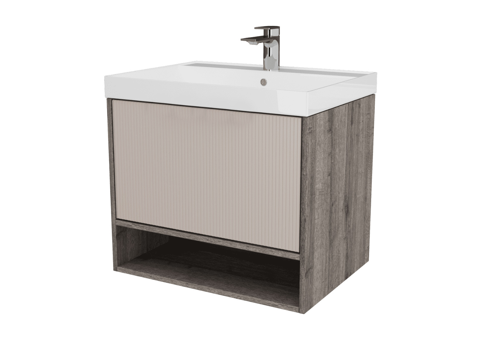 Тумба Рица 80 подвесная 1 ящик, ниша раковина Слим 80 cерый/керамика