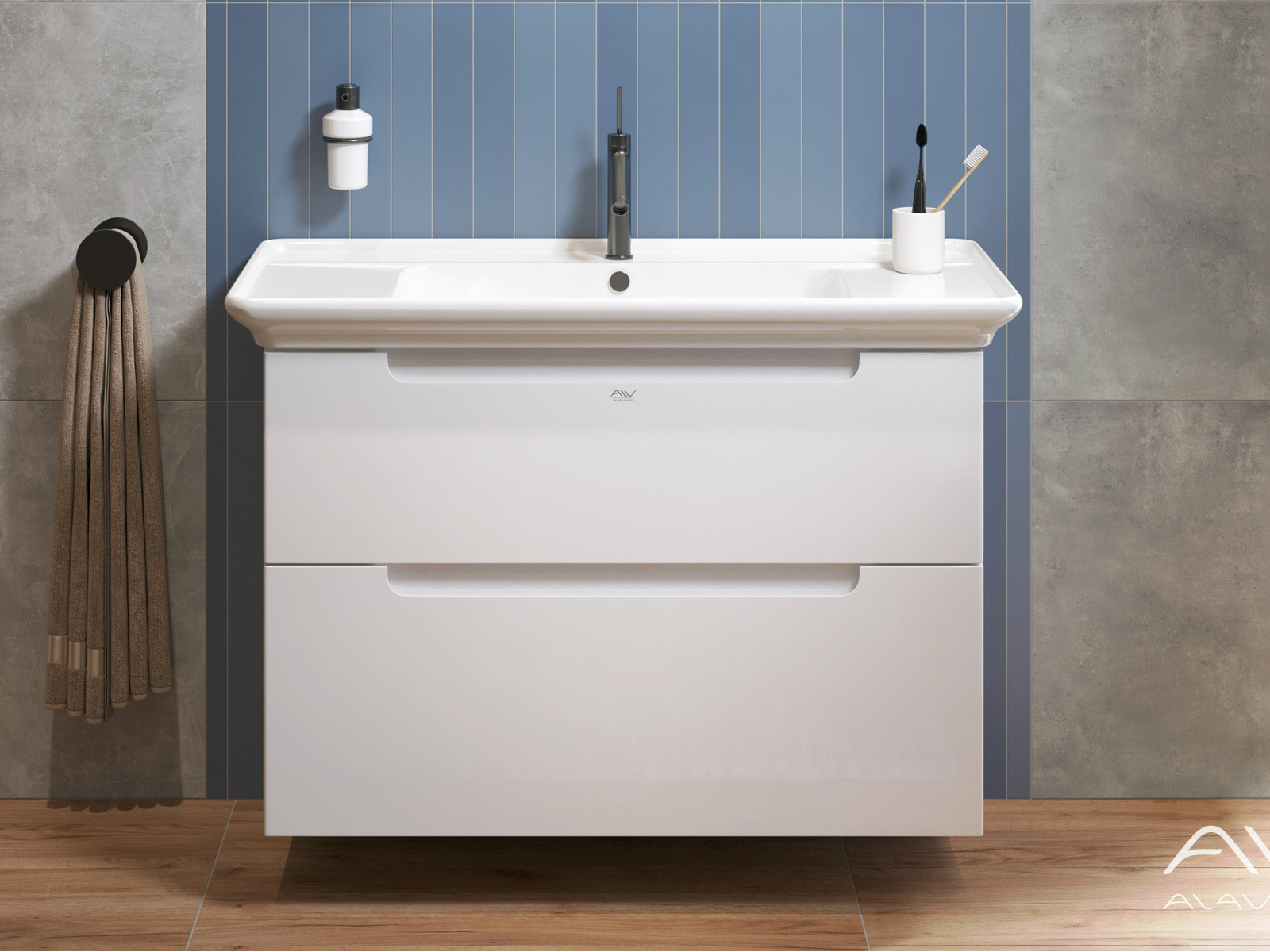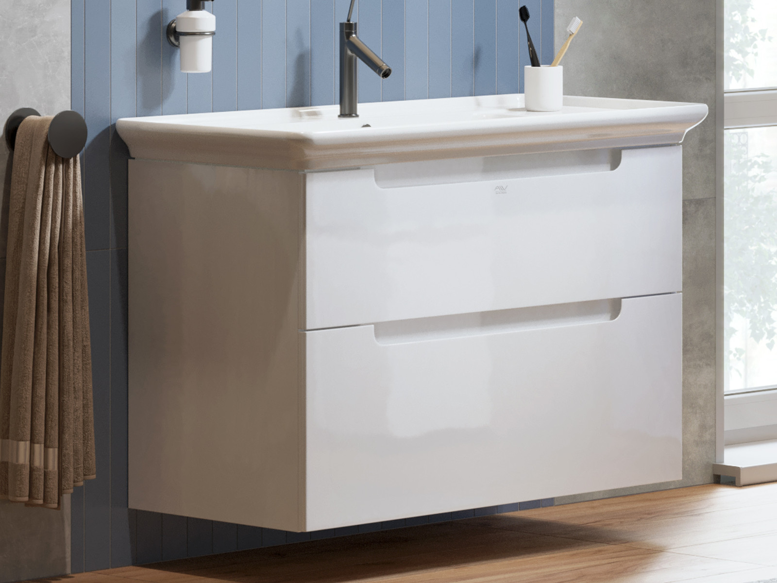 - Тумба с раковиной Berta 105 белая