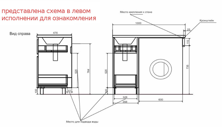 Размер ШхГхВ: 358/1000х476х885 мм