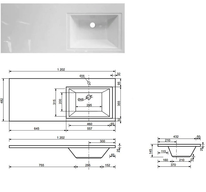 - Тумба с раковиной Dallas Luxe 1200 напольная 3 ящика правая