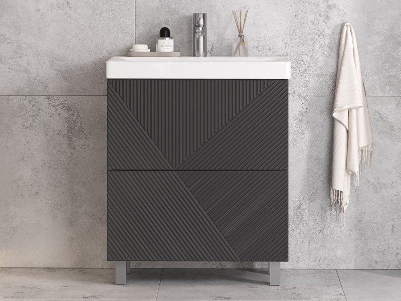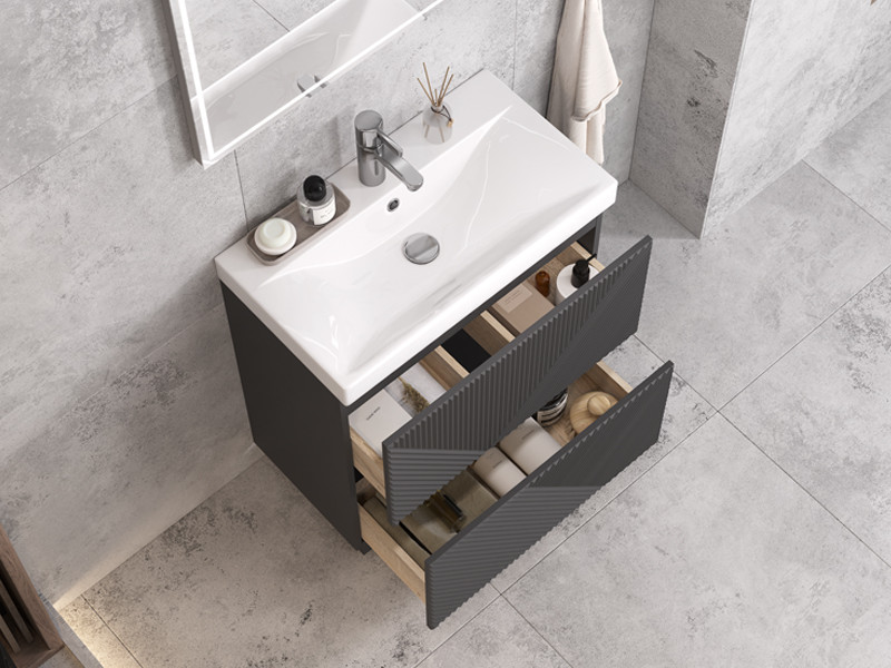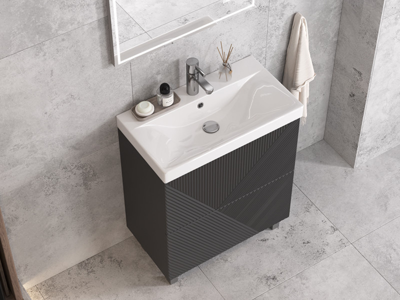 Материалы тумбы: МДФ, влагостойкая ЛДСП, полимерное покрытие ПВХ, врезная ручка, европейская фурнитура