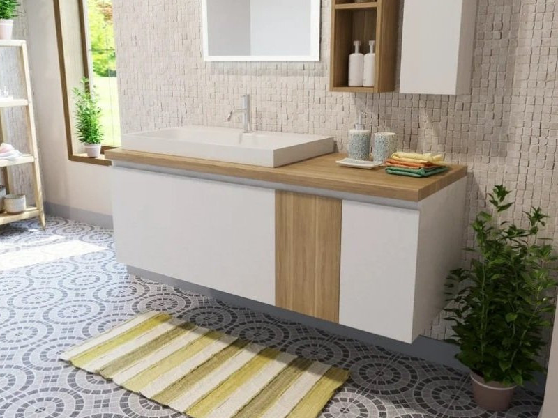 - Тумба с раковиной подвесной Malibu 1400 левосторонний 2 ящика со вставкой массив