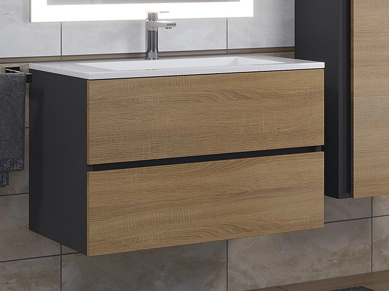 - Тумба с раковиной Uperwood Barsa-Next черная/дуб сонома 80 см