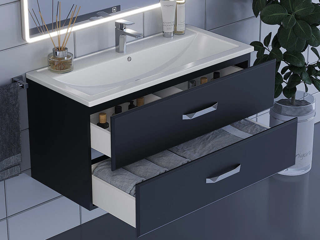 - Тумба с раковиной Uperwood Foster черная 100 см