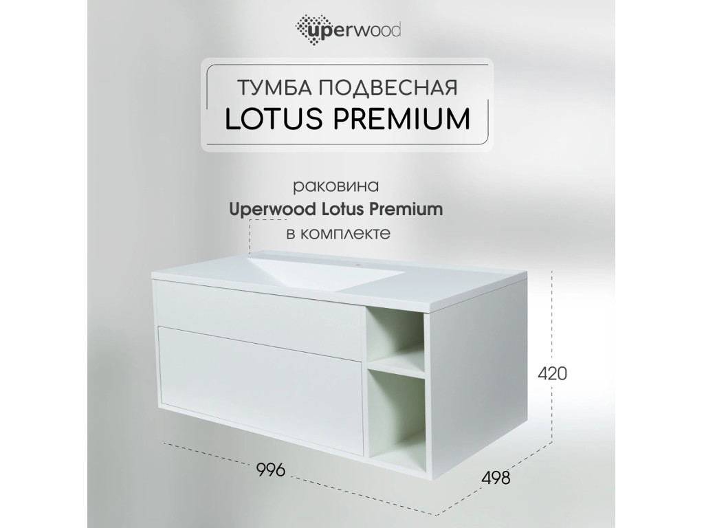 - Тумба с раковиной Uperwood Lotus Premium белая 100 см