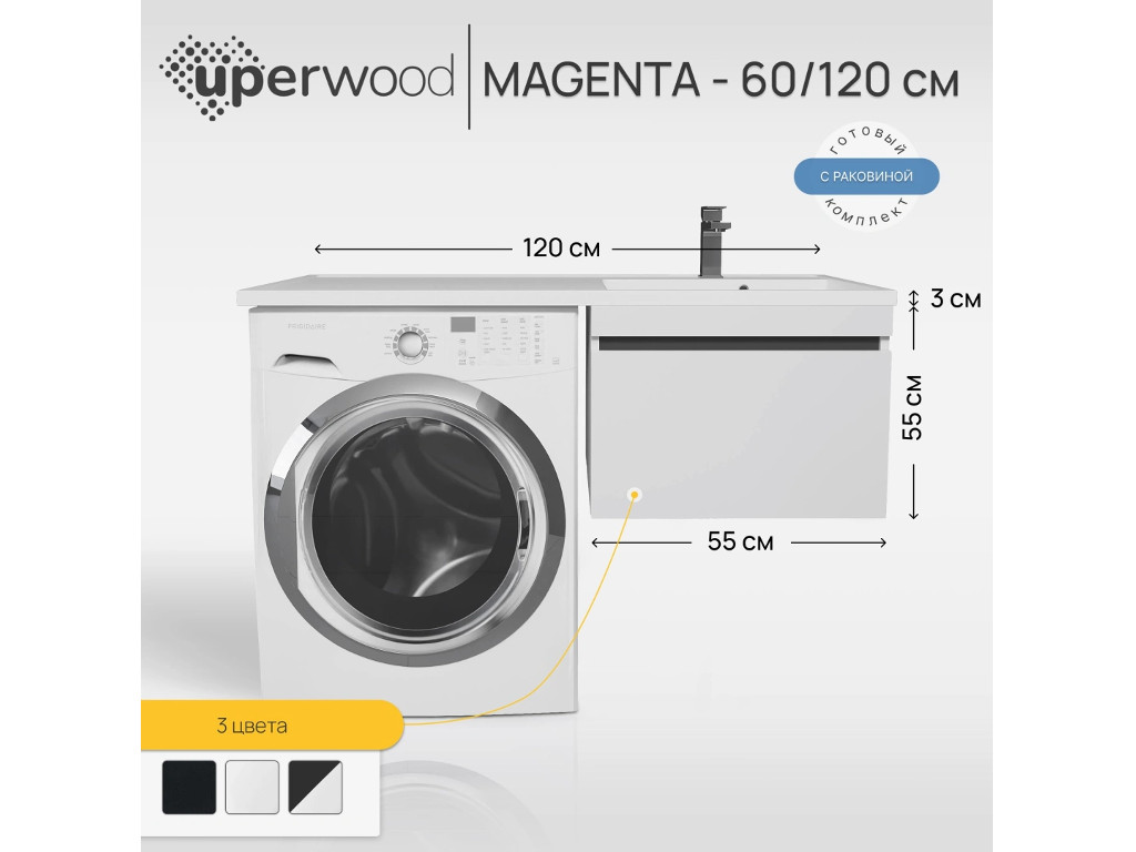 - Тумба с раковиной Uperwood Magenta 60-120 см подвесная белая/графит выдвижной ящик правая
