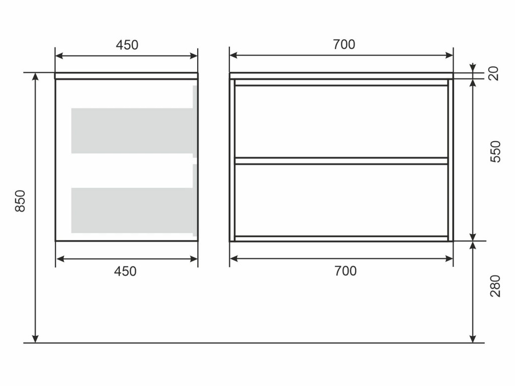 - Тумба с раковиной Uperwood Next Premium белая 2 ящика 70 см