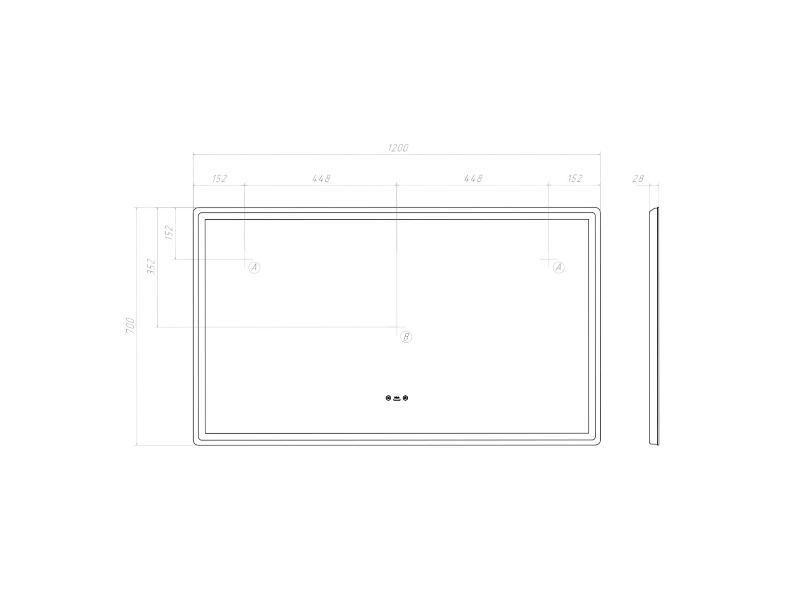 Подсветка фронтальная по периметру, с цветовой температурой 5000К – нейтральный белый, управление подсветкой сенсорное/датчик присутствия (1.5 м.)