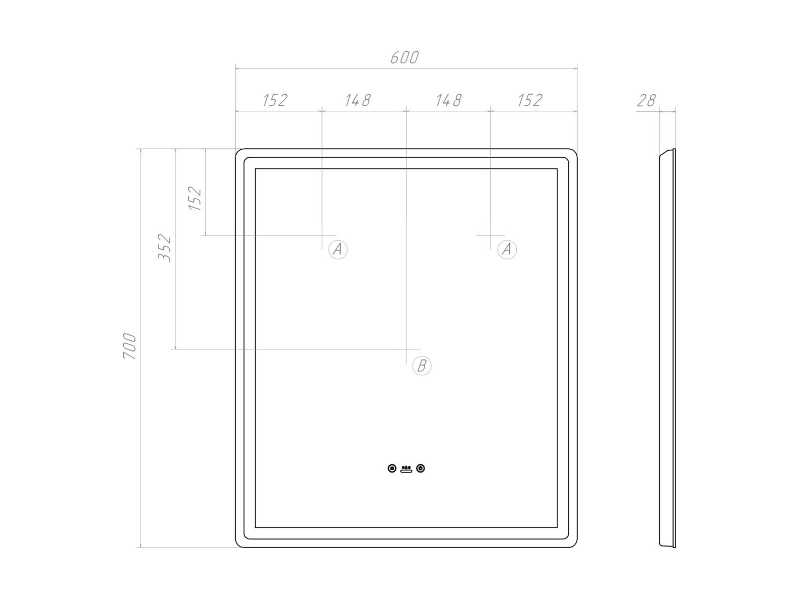 Подсветка фронтальная по периметру, с цветовой температурой 5000К – нейтральный белый, управление подсветкой сенсорное/датчик присутствия (1.5 м.)