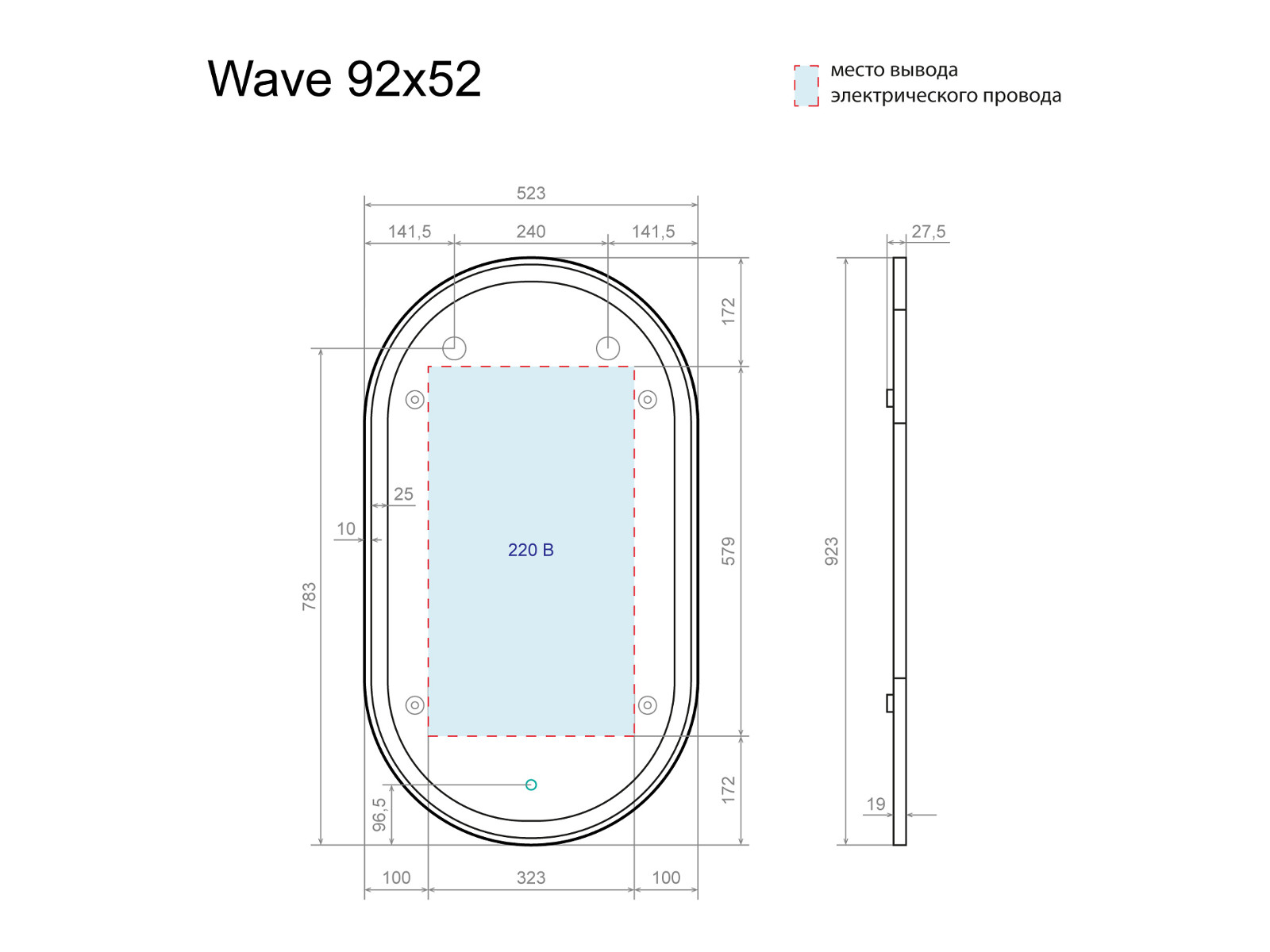 Зеркало с подсветкой Wave 90