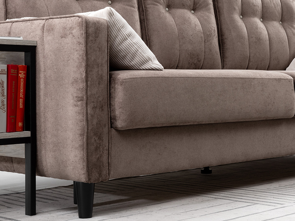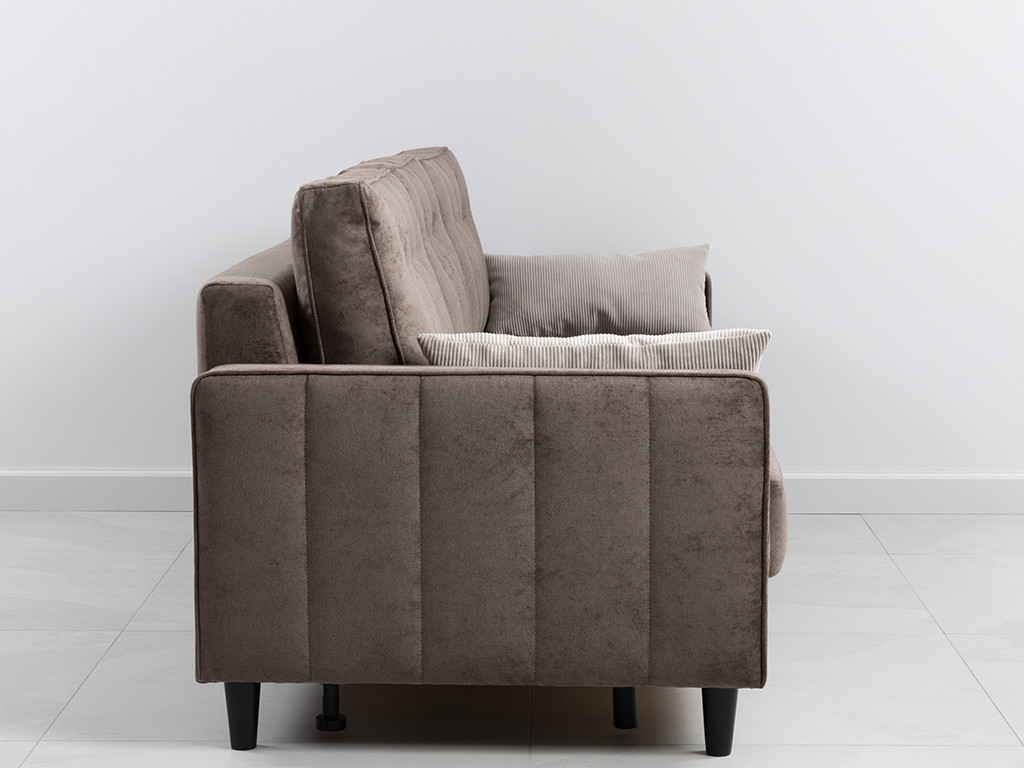 Подушки имеют трапециевидную форму, с утолщением к низу для комфорта посадки. Кант по всему периметру подушек, декоративные утяжки металлическими пуговицами, вертикальная стежка.