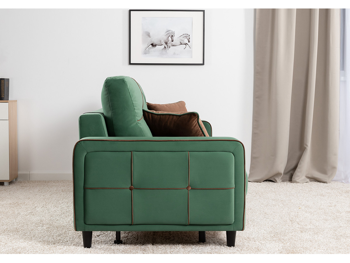 - По торцам подлокотников и думках контрастный декоративный кант.