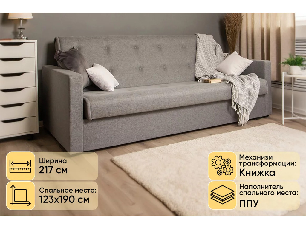 Диван прямой Синара Серый Лагуна 994