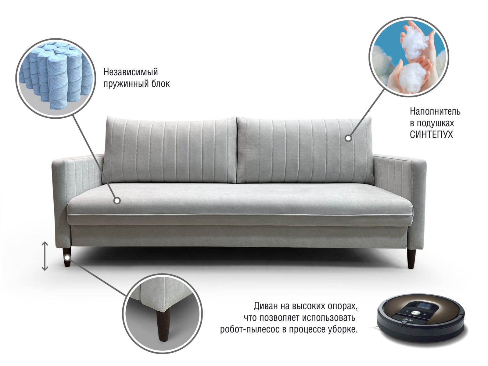 - Наполнитель подушек: синтепух