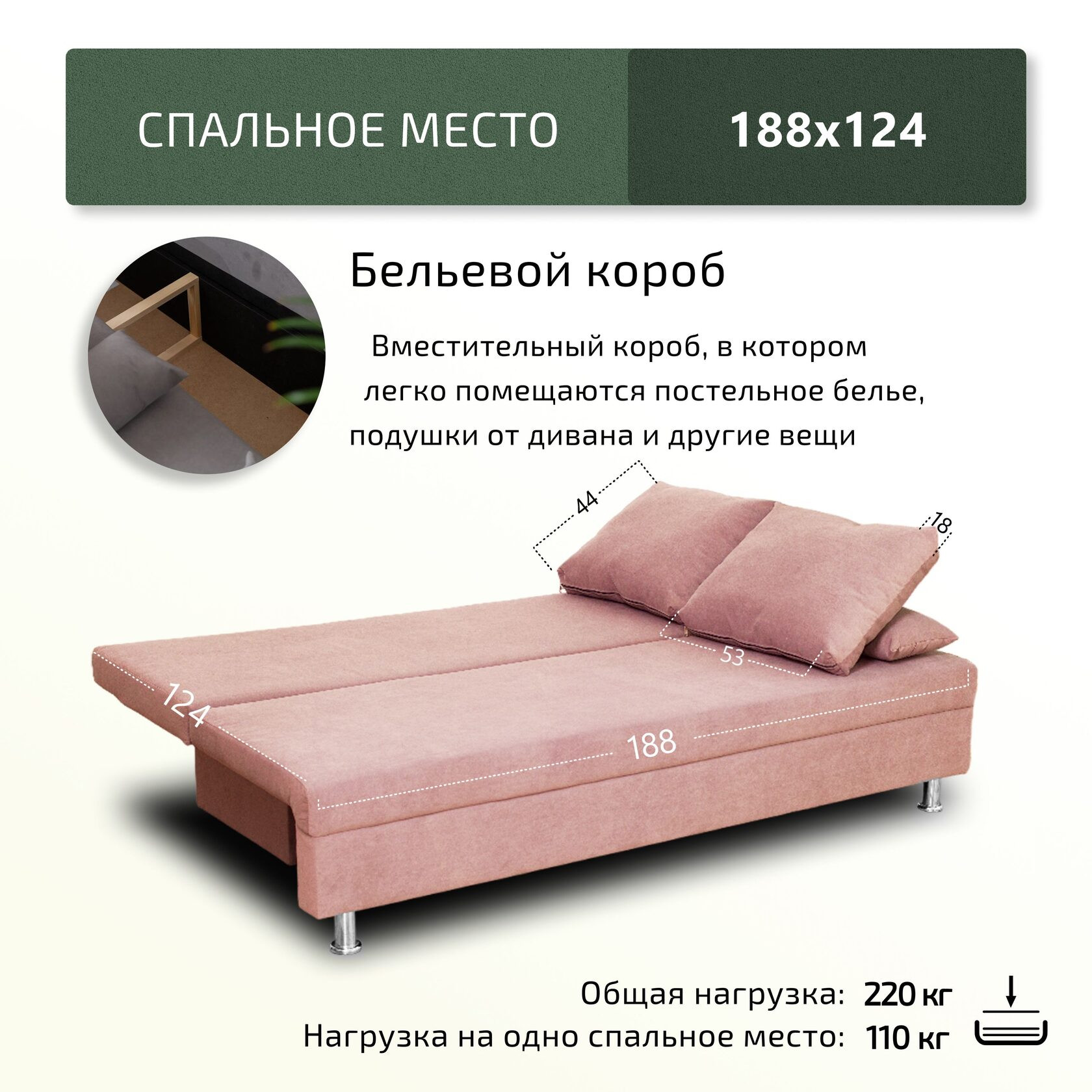 Спальное место, мм: 1240х1880 мм