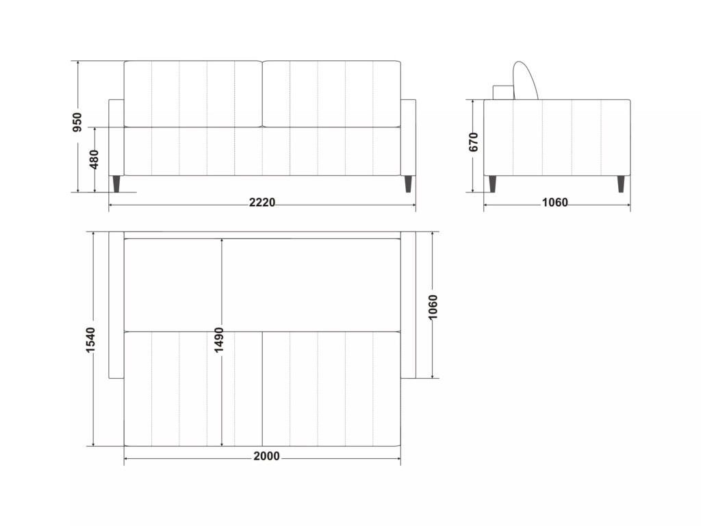 Каркас: выполнен из древесины хвойных пород, фанеры лиственных пород, лам. ДСП и лам. ДВП. В диване короб из ЛДСП. Опоры высота 120 мм