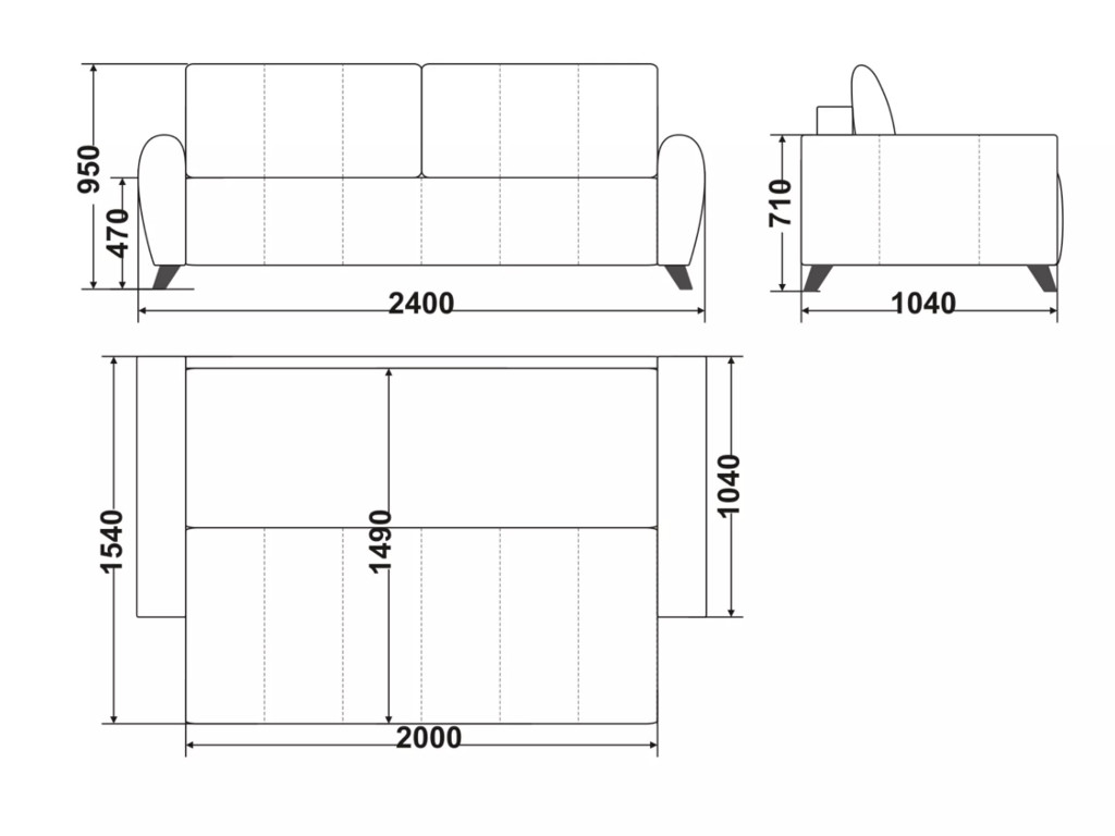 Размеры дивана (мм): 2400*1040*950