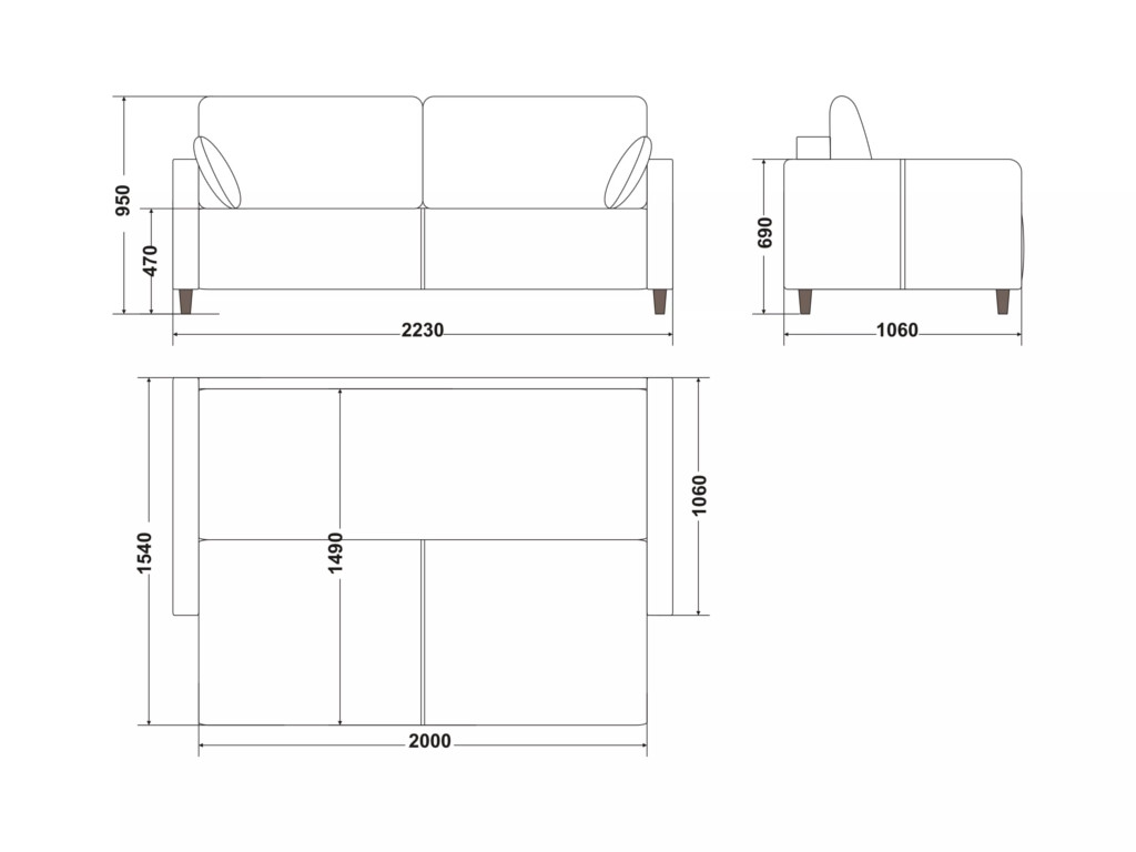 Размеры дивана (мм):  2230*1060*950