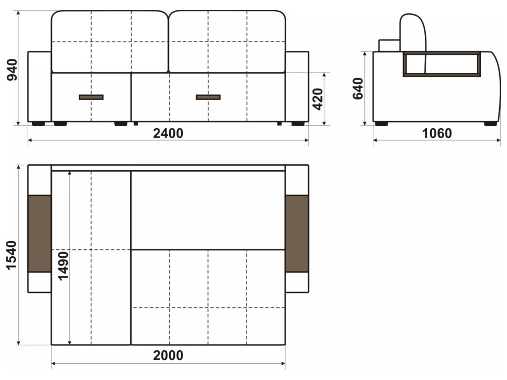 Наполнитель: в основании спального места независимый пружинный блок с дополнительным многослойным покрытием: термовойлок, высокоэластичный пенополиуретан, синтепон; подушки спинки имеют внутренний чехол на синтепоне, наполнитель комбинированный, гипоаллергенный пух «комфорель» с пенополиуретановой крошкой.