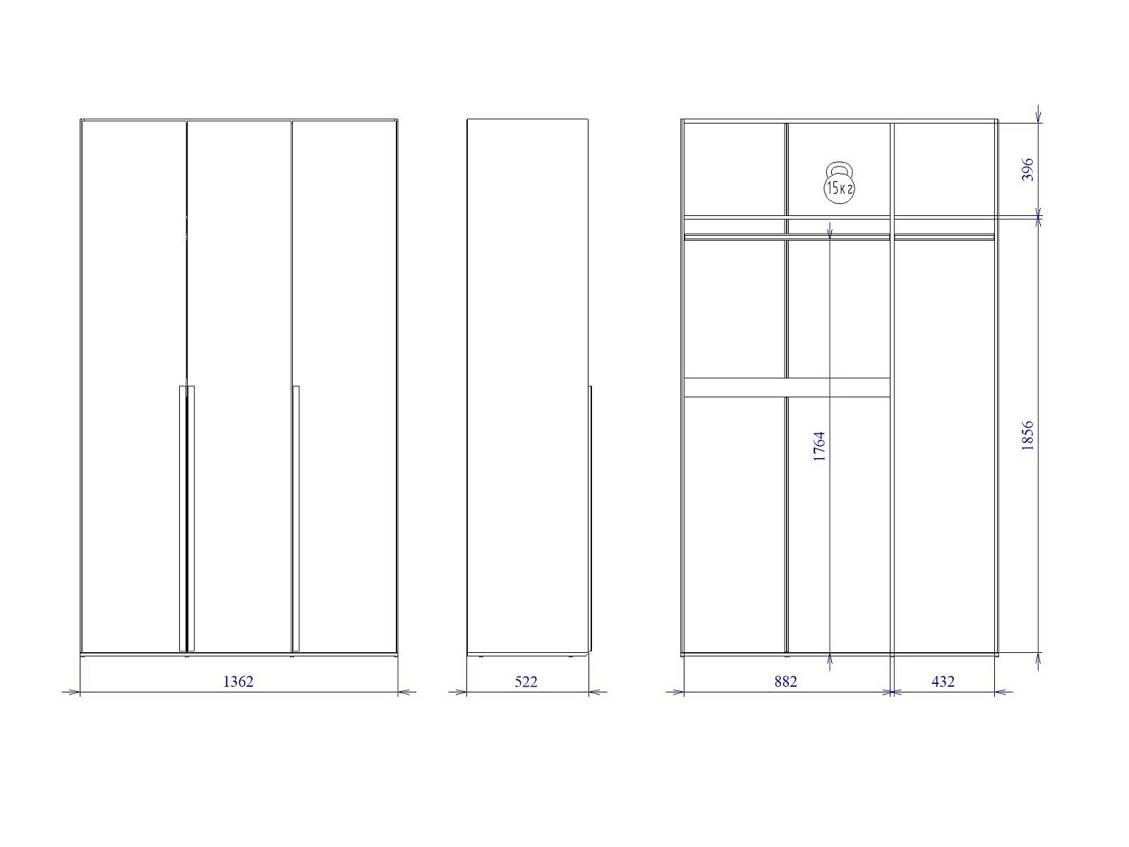 Макс.нагрузка на полку (кг): 15