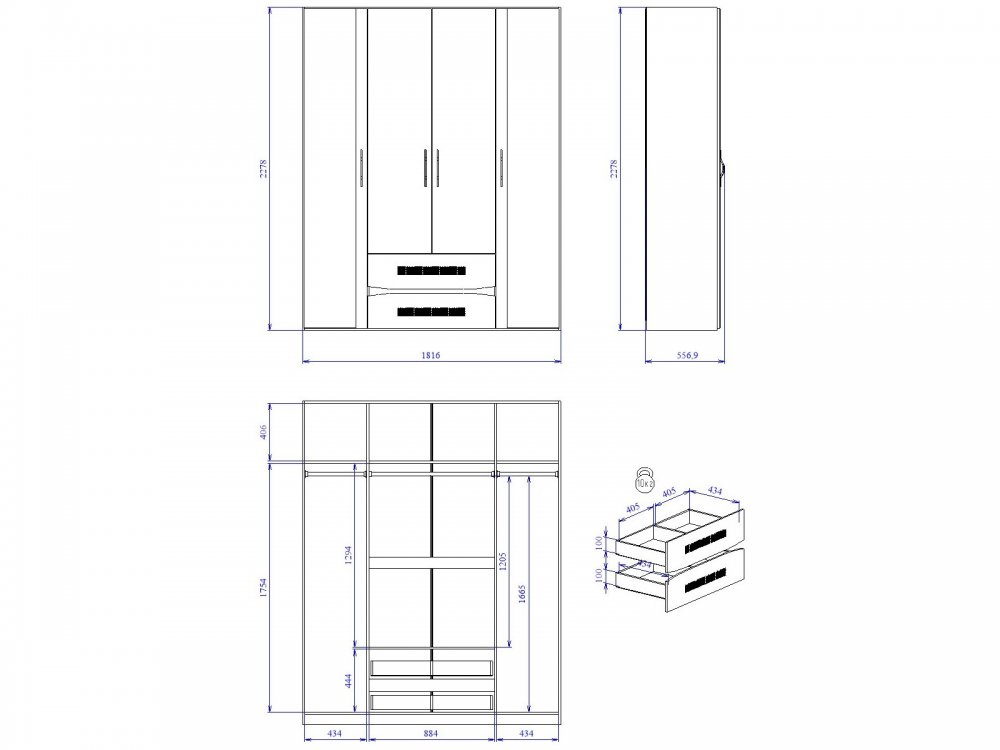 Шкаф 4-х дверный Мале
