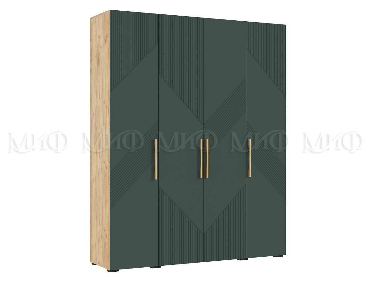- Шкаф 4-х створчатый (1800) Ирис Браш Мени Грин, Дуб Крафт