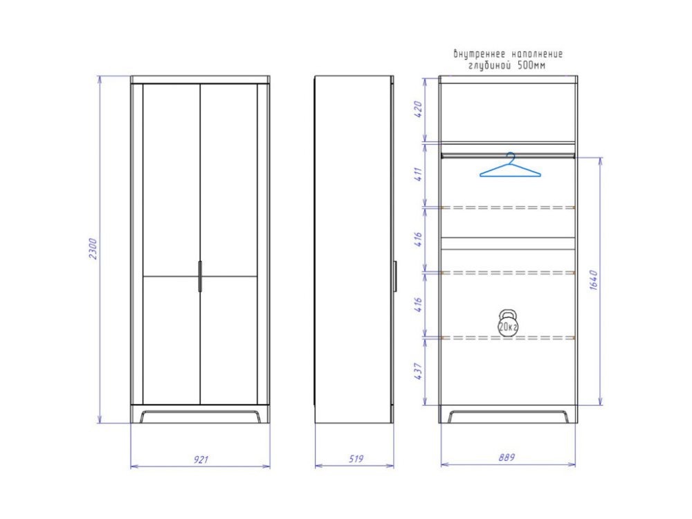 - Шкаф для одежды 2-х дверный Юта Дуб Мария
