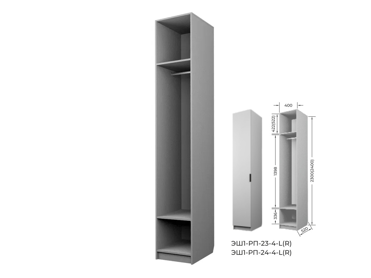 Комплект: ЭШ1-РП-23-4-R,Шкаф для Одежды + ЗС-23,Зеркало для шкафов ЭШ 2300 мм