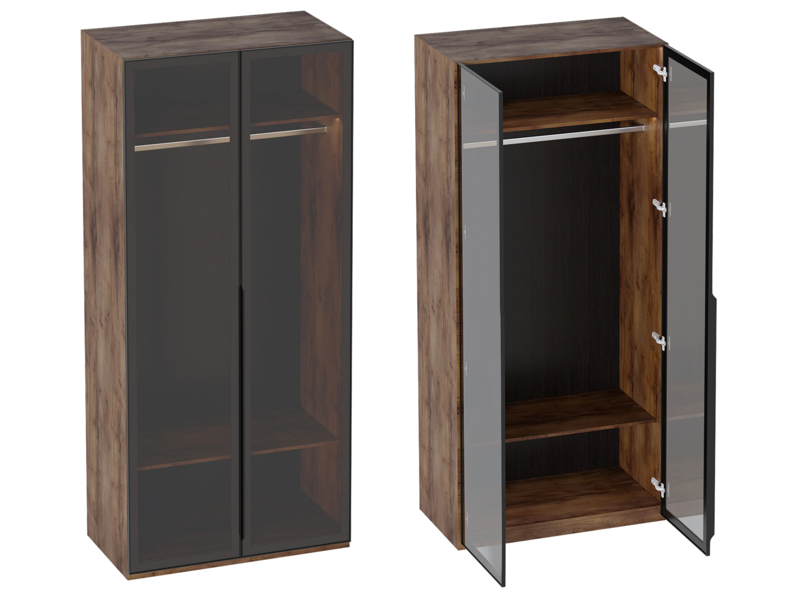 Шкаф двухстворчатый Браун со стеклянными дверями со светильником