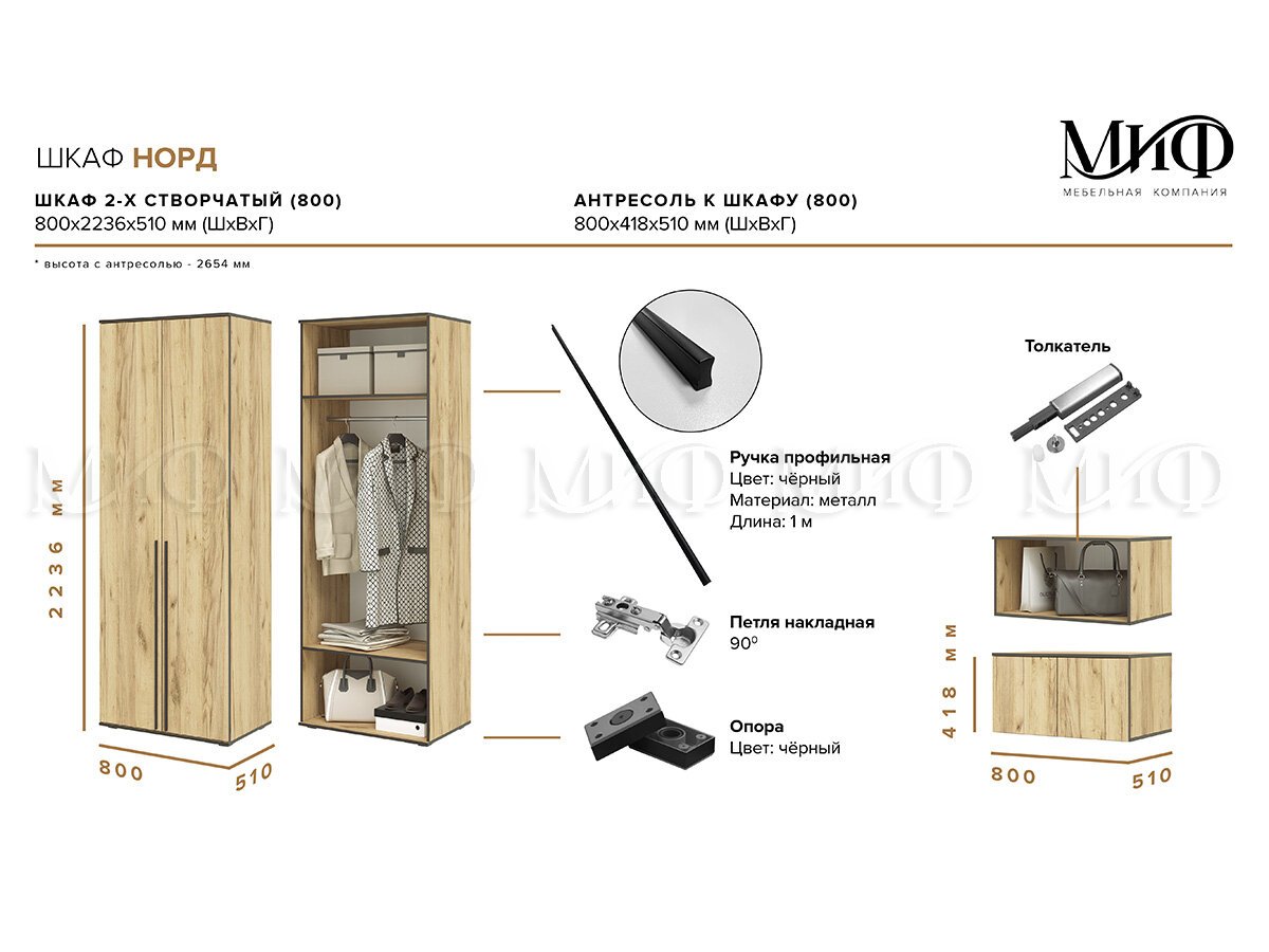 - Шкаф двухстворчатый Норд 800 дуб крафт белый МГ