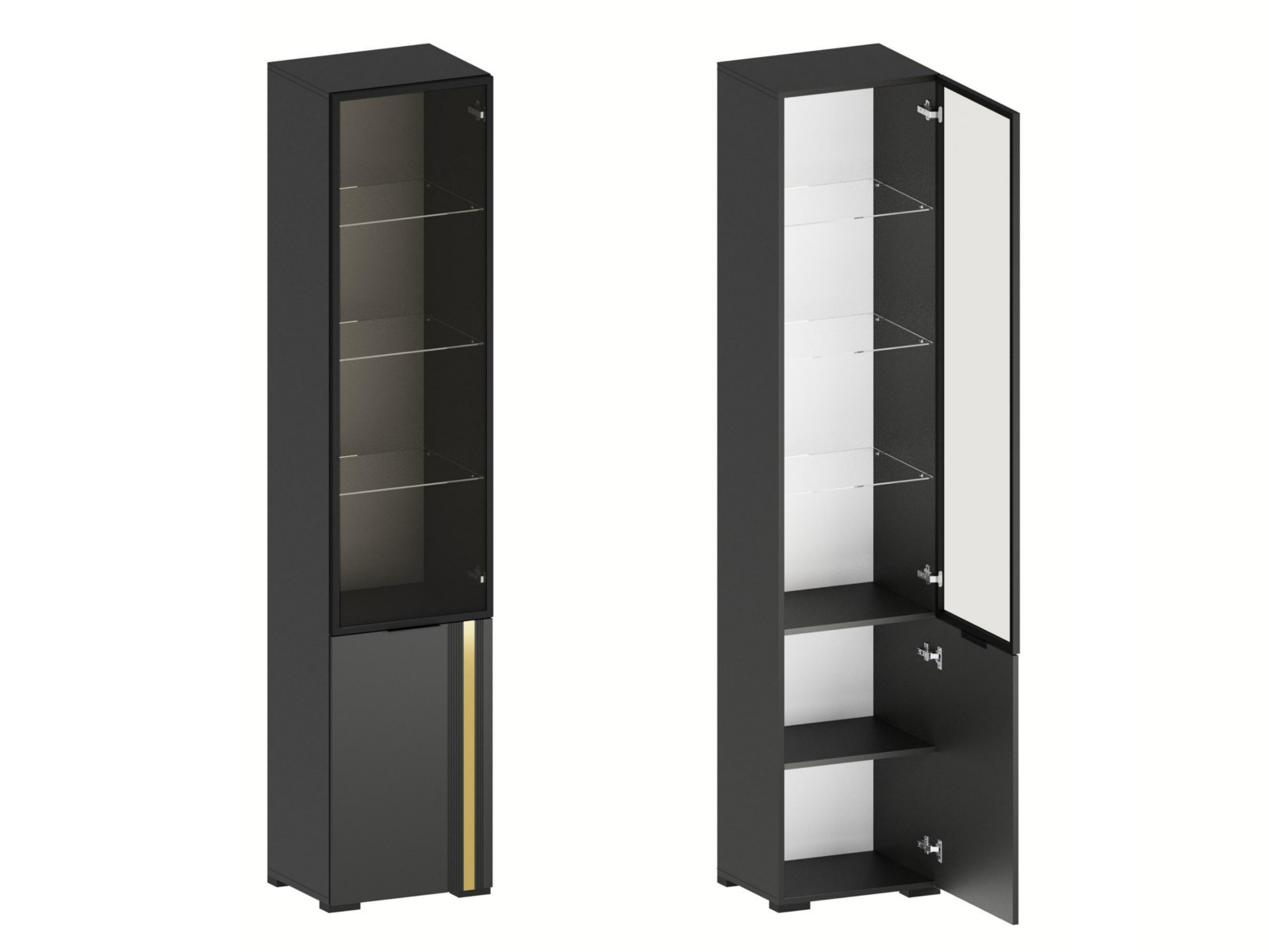 - Фасады из МДФ с оригинальной фрезеровкой покрыты суперматовой пленкой с эффектом Soft Touch в цветах Графит и Milk.