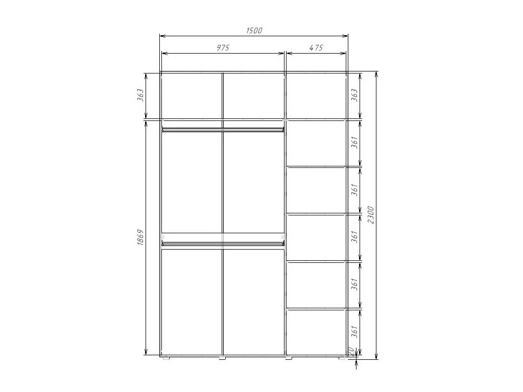 - Шкаф Гранд ГШК/2-23-15-111 (двери тип 1) с одним зеркалом