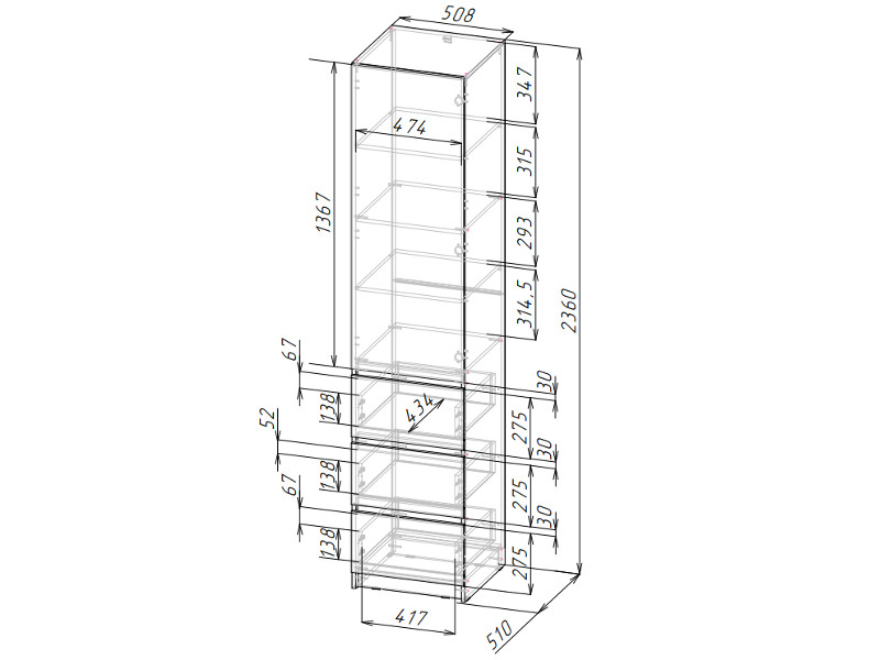Габаритные размеры: Д.508 х В.2360 х Г.510 мм.