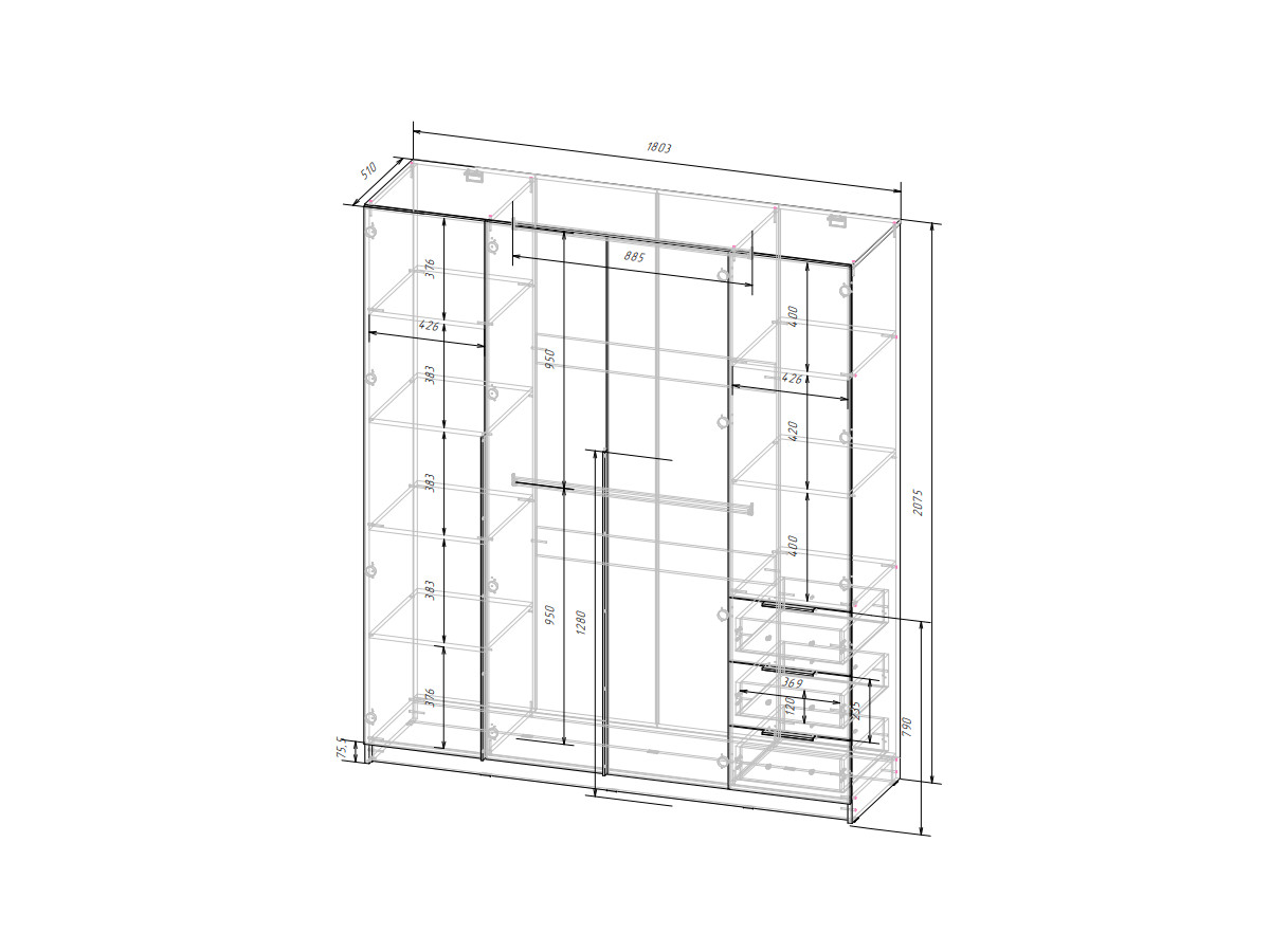Габариты: Д.1803 х В.2075 х Г.510 мм