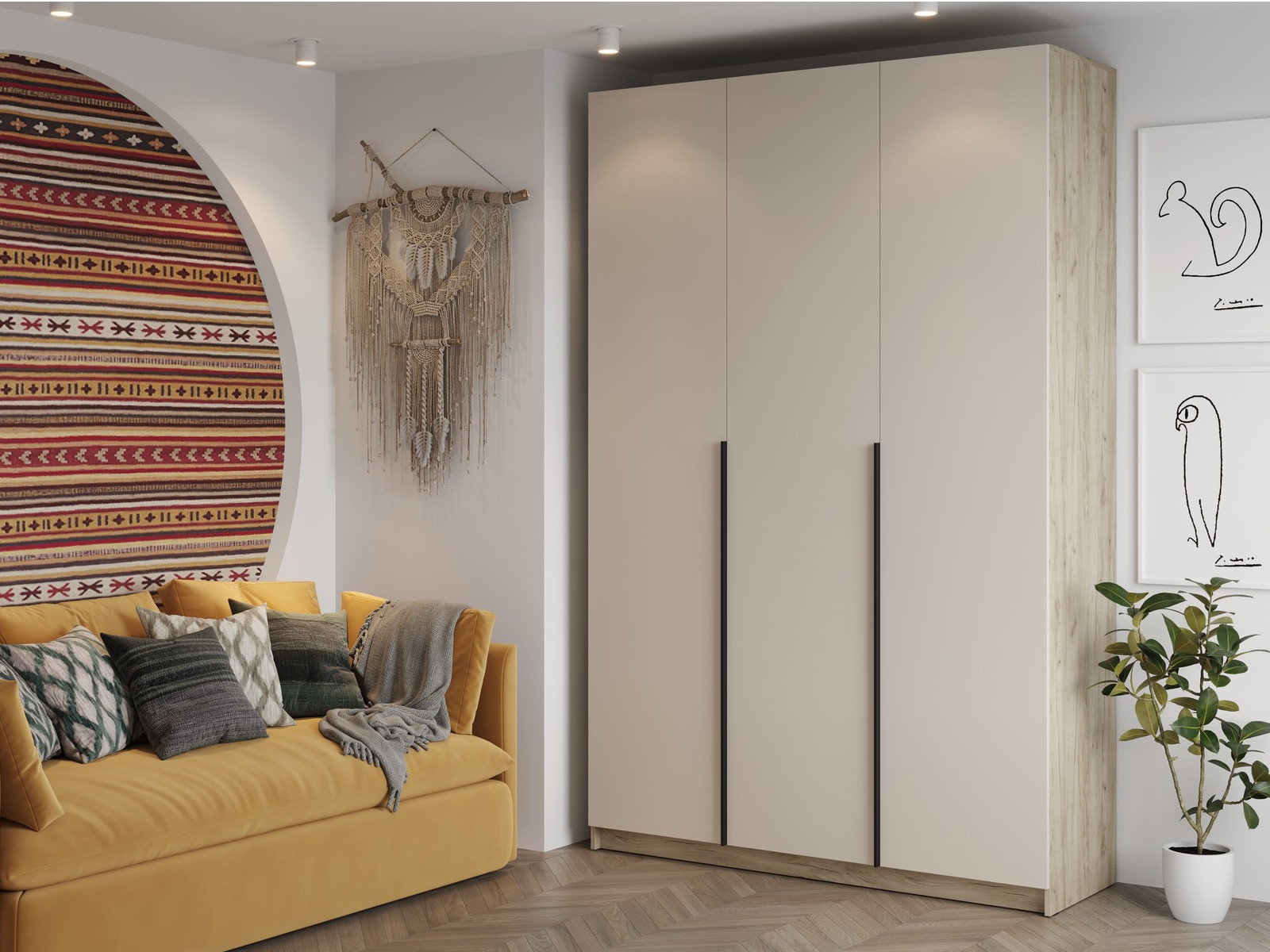 Шкаф ШК-004 комбинированный трехстворчатый Бохо