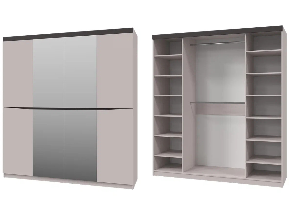 Материал фасада: зеркало, МДФ Смоки Soft touch, ЛДСП Персидский Жемчуг, ЛДСП Вольфрам