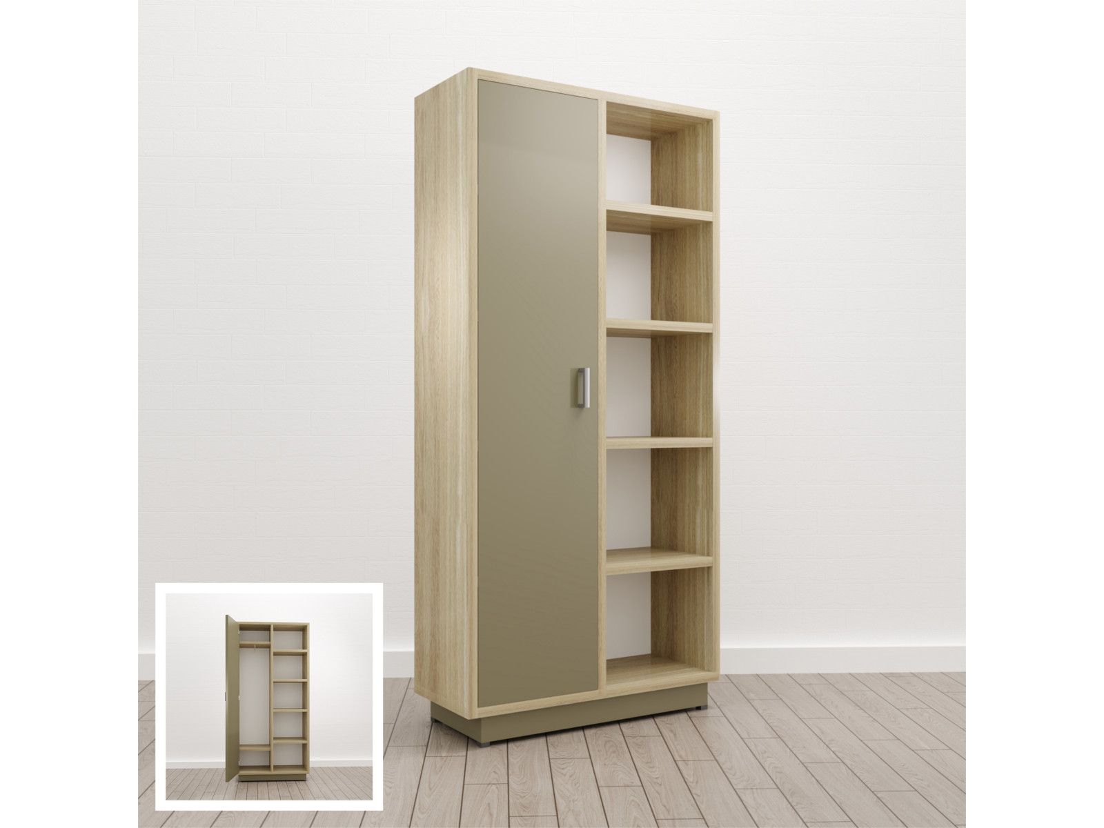 - Шкаф комбинированный Левый (Е-13) Eclectic eco Дуб рокпайл-Мокко